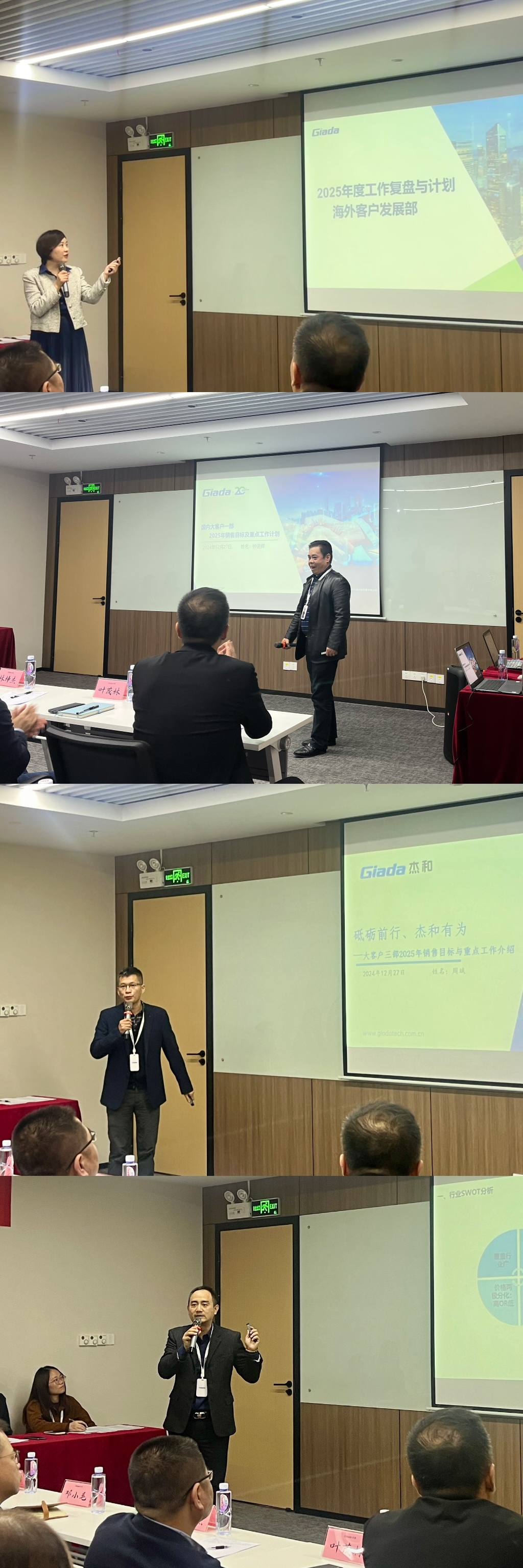 目标的达成,离不开每个中后台部门的通力合作和全力以赴。在此次大会上,硬件开发部、软件开发部、杰拓工厂等9个部门负责人不仅详尽规划了2025年的工作蓝图,更坚定表态,将作为业务部门最坚强、最可靠的后盾,确保前线作战的胜利无后顾之忧。